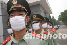 隨著最后一批SARS患者的康復(fù)出院,北京小湯山醫(yī)院圓滿完成歷史使命,擔(dān)負(fù)醫(yī)院警衛(wèi)任務(wù)的武警戰(zhàn)士也準(zhǔn)備撤離。中新社記者:史利