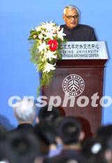 正在北京進(jìn)行訪問的印度總理瓦杰帕伊二十三日在北京大學(xué)舉行演講。中新社記者:鄭萍萍