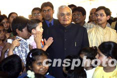 圖:瓦杰帕伊與在華印度兒童一起交談