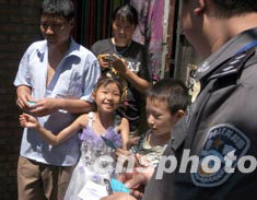 夏季高溫酷暑來臨,北京東城警方的警員二十四日深入居民家中,針對(duì)居住平房極易發(fā)生溜門盜竊的情況,耐心講解如何做到安全防范。中新社記者:任海霞