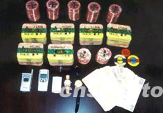 廣東省公安廳二十四日在珠海市召開新聞發(fā)布會,公布了廣東警方與湖南和廣州鐵路公安、澳門警方通力協(xié)作,迅速偵破澳門葡京酒店陳世賢被搶劫殺害案的始末。圖為該案部分贓物。作者:肖定東