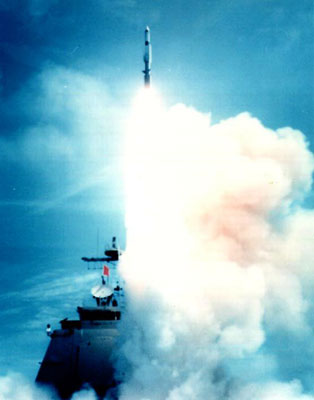 根據(jù)“兩階段防御系統(tǒng)”,SM-3導彈將首先從宙斯盾護衛(wèi)艦上發(fā)射,以此在大氣層之外攔截入侵的導彈,這將會是新型導彈防御系統(tǒng)的上層保護措施,第二階段將由PAC-3愛國者導彈來攔截進入大氣層的導彈,這是新型導彈防御系統(tǒng)的下層保護措施。