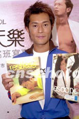 影視紅星古天樂6月27日在香港出席加盟Music Nation首張寫真AVCD發(fā)布會(huì),古天樂影而優(yōu)則唱進(jìn)軍樂壇,早前遠(yuǎn)赴太平洋塞班島拍寫真為配合新碟推出。中新社記者 鄧慶樂