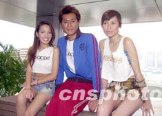 影視紅星古天樂6月27日在香港出席首張寫真AVCD發(fā)布會(huì),大會(huì)特別安排美女相伴左右為他造勢。中新社記者 鄧慶樂
