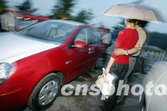 一對(duì)情侶二十七日晚在北京街頭冒雨觀看心儀的新款車型。由首都汽車股份公司主辦的汽車展示周活動(dòng)二十七日晚在北京郡王府前的噴泉廣場(chǎng)揭幕。這是北京“雙解除”后,舉行的系列消夏活動(dòng)之一。中新社記者:毛建軍