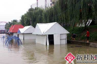 由于上游接連普降大雨,漓江水位迅速上漲,至6月27日9時(shí)30分,達(dá)到147.09米,比去年最高洪峰超出0.17米,超過30年一遇特大洪水。為了確保游覽漓江游客的生命安全,桂林市海事局發(fā)出封航令,漓江全線封航。