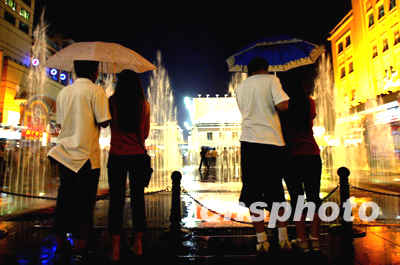 而更大規(guī)模的人群涌向了不同的地方。北京商委說,盡管下起了大雨,昨晚仍吸引了一百五十萬市民走出家門購物消費(fèi)和休閑娛樂。其中,王府井商業(yè)街的顧客達(dá)二十萬人,西單商業(yè)街的客流突破三十萬人,宣武區(qū)三個(gè)主要商場及消夏夜市活動共吸引近二十五萬市民,朝陽區(qū)當(dāng)晚各商圈客流達(dá)到三十四點(diǎn)三萬人,海淀區(qū)六家主要商場客流達(dá)二十二萬人……