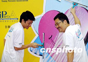 6月28日,香港著名藝人劉德華與漫畫家黃玉郎應(yīng)邀出席擦亮香港大行動-“義”氣青年發(fā)動儀式,為百多名青年義工鼓勵(lì)打氣。作者:洪少葵