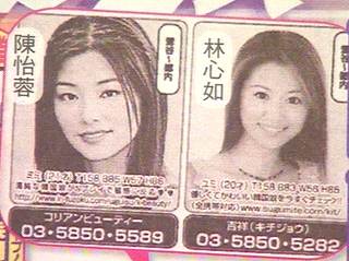 中新網(wǎng)6月30日電 在日本最新一期成人八卦雜志《周刊實(shí)話》中,0204號(hào)的小廣告中竟然赫然出現(xiàn)了中國(guó)臺(tái)灣玉女偶像陳怡蓉及林心如的照片,她們不僅被說(shuō)成是韓國(guó)女生,還被冠上了不實(shí)年紀(jì)及三圍尺寸。