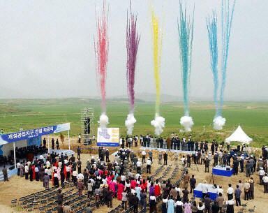 開城工業(yè)園區(qū)位于平壤東南方170公里、漢城西北方70公里,占地約6600平方米。該工業(yè)園區(qū)投資2200億韓元,工程計劃于2007年完工。