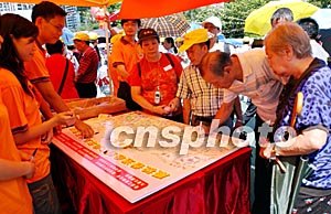 香港慶祝回歸六周年在維園舉辦大型慶;顒樱姸嗍忻駞⑴c。圖為市民在留言板上簽名紀(jì)念。洪少葵 攝