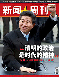中新網(wǎng)7月2日電 中國《新聞周刊》派記者赴韓國漢城,并專訪韓國總統(tǒng)盧武鉉,于7月7日將出版的新一期雜志中推出封面文章:清明的政治是時代的精神。