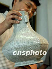 多件明清皇帝珍愛的瓷器將于七月中旬在北京華辰春季拍賣會上亮相。清代雍正和乾隆兩帝酷愛宋瓷而仿哥釉六方貫耳瓶,首次向國內(nèi)外公私收藏界展現(xiàn),估價八十萬元人幣。中新社記者 賈國榮 攝