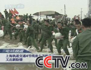 中新網(wǎng)7月3日電 據(jù)中央電視臺報道,今天下午1:30分,上海軌道交通4號線滲水事故險情出現(xiàn)新變化,由武警戰(zhàn)士用了6個多小時圍起的防護(hù)堤突然坍塌。