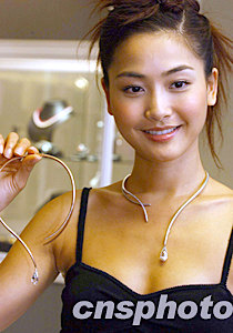 中新網(wǎng)7月4日電 “香港佳士得2003年瑰麗珠寶及翡翠首飾春季拍賣會”昨天舉行,邀得周汶锜(Kathy)擔(dān)任模特兒。