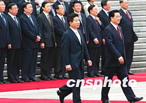 會(huì)談前,胡錦濤在人民大會(huì)堂東門(mén)外廣場(chǎng)為盧武鉉訪華舉行了歡迎儀式。會(huì)談后,兩國(guó)元首出席了《中國(guó)工程院和韓國(guó)工程院工程科技合作諒解備忘錄》等三個(gè)文件的簽字儀式,并共同會(huì)見(jiàn)了中外記者。