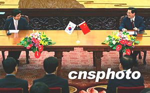 中新社北京七月七日電(記者 姜知然)中國(guó)國(guó)家主席胡錦濤七日下午在人民大會(huì)堂與來(lái)華進(jìn)行國(guó)事訪問(wèn)的韓國(guó)總統(tǒng)盧武鉉舉行會(huì)談時(shí)稱(chēng),在新世紀(jì)建立和發(fā)展中韓全面合作伙伴關(guān)系將開(kāi)創(chuàng)中韓睦鄰友好和互利合作的新局面。