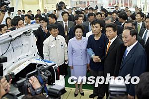 中新網(wǎng)7月10日電 在中國進(jìn)行訪問的韓國總統(tǒng)盧武鉉及夫人,昨天(9日)下午在北京市代市長王岐山的陪同下,興致勃勃地參觀北京現(xiàn)代汽車公司。據(jù)北京日報報道,盧武鉉講話說,來到北京現(xiàn)代汽車公司感慨萬千;韓國現(xiàn)代集團(tuán)與北京合作,是韓中雙方的幸運。