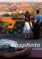 仲夏日的午后,許多游客慕名來到北京景山山頂俯瞰故宮美景,而在此納涼的一些市民陋習不改,大煞風景。中新社記者:張煒