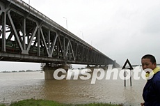 七月十一日凌晨,為了減輕淮河連日降雨給淮河干堤帶來(lái)的巨大防洪壓力,安徽阜陽(yáng)王家壩進(jìn)水閘繼七月三日后再度開(kāi)啟。中新社記者:盛佳鵬  淮南淮河大橋的交通仍然正常運(yùn)行,未受太大影響。中新社記者:盛佳鵬