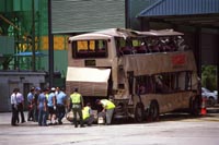 據(jù)香港大公報(bào)報(bào)道,出事九巴殘骸于前日下午已被運(yùn)至大嶼山車輛扣留中心,并于昨日交由警方﹑運(yùn)輸署及九巴公司聯(lián)手進(jìn)行檢查。