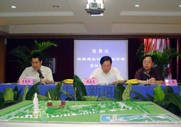 據(jù)悉,作為鄭和下西洋起始點(diǎn)的位于南京鼓樓區(qū)河西龍江地區(qū)的寶船廠遺址,是全球僅存的未經(jīng)挖掘的600年前造船工業(yè)的文化遺產(chǎn)。南京市鼓樓區(qū)委、區(qū)政府為紀(jì)念鄭和下西洋600周年,弘揚(yáng)中華航?茖W(xué)文化,決定結(jié)合文物保護(hù)和現(xiàn)代開發(fā),保護(hù)性地建設(shè)寶船遺址公園。會(huì)上,鼓樓區(qū)政府副區(qū)長袁嗣兵詳細(xì)介紹了寶船遺址公園的規(guī)劃布局、景點(diǎn)立意、籌建情況及內(nèi)容方案等,并通過遺址公園的規(guī)劃模型,讓人們感受了600年前的歷史空間格局。一尊鄭和塑像、三泓碧灣清水,布列岸邊的油麻地、蓬廠作坊、巨錨廣場等造船設(shè)施,將全面打造出一座以寶船遺址為核心的鄭和文化體驗(yàn)式公園。