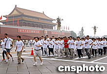 另外,由北京市體育局主辦的“北京申奧成功兩周年萬(wàn)人長(zhǎng)跑”活動(dòng)于今天早上八時(shí)舉行,參加長(zhǎng)跑者由天安門(mén)廣場(chǎng)東口出發(fā)向北至廣場(chǎng)東側(cè)路北口,經(jīng)天安門(mén),西長(zhǎng)安街,復(fù)興門(mén)內(nèi)、外大街,復(fù)興路至中華世紀(jì)壇結(jié)束。
