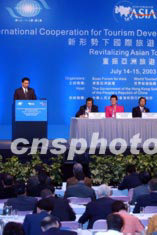 由博鰲亞洲論壇、世界旅游組織合辦的“重振亞洲旅游業(yè)會議”,7月14日在香港會展中心舉行。會議主題是重振亞洲旅游業(yè),在SARS對亞洲旅游業(yè)打擊以后,如何恢復人們對旅游業(yè)信心。中新社記者:洪少葵