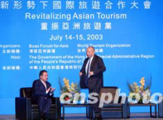 為期兩天的“新形勢(shì)下國(guó)際旅游合作大會(huì)”今天在香港開(kāi)幕,這次國(guó)際會(huì)議由博鰲亞洲論壇和世界旅游組織聯(lián)合舉辦,主題為“重振亞洲旅游業(yè)”。董建華在開(kāi)幕式上致辭。