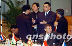 龍永圖與澳門社會事務(wù)及文化司長崔世安交談博鰲亞洲論壇秘書長龍永圖,7月15日在香港主持“新形式下國際旅游合作大會”的部長圓桌會議時(shí),與澳門社會事務(wù)及文化司長崔世安親切交談。中新社記者:洪少葵