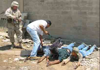 中新網7月16日電 自從薩達姆政權被推翻后,伊拉克的混亂局面就一發(fā)不可收拾,搶劫在伊拉克是最普遍的犯罪現象,這讓美軍相當頭疼,在“貓鼠游戲”扮演貓已成為美軍在伊拉克的主要任務之一,但美軍在巴格達卻有點草木皆兵,甚至連婦女兒童都被當成搶劫嫌疑犯逮捕。難怪有人笑稱,在巴格達,人們最怕的就是美國大兵半夜敲門。