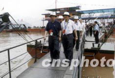 七月上中旬,臺灣企業(yè)家三峽地區(qū)投資考察團(tuán)一百多人在參觀了重慶一些企業(yè)后來到三峽白帝城游覽。圖為企業(yè)家們乘旅游船在白帝城碼頭上岸。作者:李中全