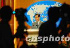 外交部發(fā)言人孔泉十七日在北京就韓朝在軍事分界線(xiàn)發(fā)生交火、外交部副部長(zhǎng)戴秉國(guó)訪(fǎng)問(wèn)美國(guó)、布萊爾訪(fǎng)華等回答中外記者提問(wèn)。本次發(fā)布會(huì)是暑期前的最后一次發(fā)布會(huì)。中新社記者:滿(mǎn)會(huì)喬