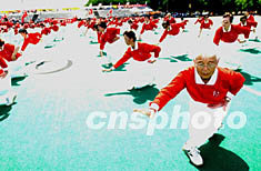全美規(guī)模最大的華人運動會七月十九日在北加州尤寧城詹姆斯·洛根高中開幕,有一百四十七支運動隊的五千名運動員參賽,美國元極舞協(xié)會也在開幕式上表演助興,七十七歲的吳陳秀氣是最年長的表演者。作者:陳鋼