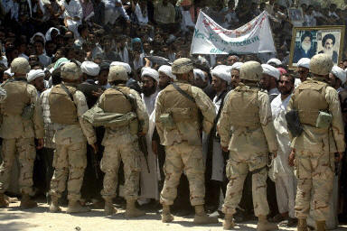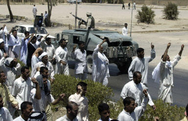 示威者在納杰夫市內一主要清真寺門前集合,步行到由美國海軍陸戰(zhàn)隊把守的市政廳門前,并高呼“不要美國”等口號。有些憤怒的伊拉克人還向美國士兵投擲石塊,美軍沒有開槍還擊。