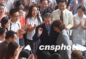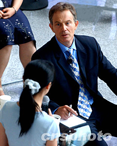 中新社北京七月二十二日電(記者齊彬)今天上午十點(diǎn),英國(guó)首相布萊爾在清華大學(xué)校長(zhǎng)顧秉林的陪同下,來(lái)到這所知名學(xué)府,與清華學(xué)子們進(jìn)行一場(chǎng)長(zhǎng)達(dá)四十五分鐘的面對(duì)面座談會(huì),并回答提問(wèn)。