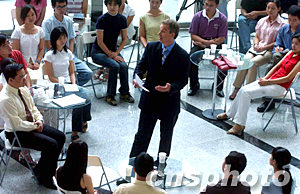 據(jù)了解,清華大學(xué)曾經(jīng)接待過(guò)多位外國(guó)政要,但以這種圓桌座談會(huì)的形式,還是第一次。參加座談會(huì)的清華大學(xué)微光機(jī)電集成研究室主任尤政教授表示,這種形式可以避免學(xué)生們產(chǎn)生與布萊爾的距離感,可以更加自由與平等的交談。這次活動(dòng)也吸引了眾多的國(guó)內(nèi)外媒體,初步目測(cè),至少有四十名記者在現(xiàn)場(chǎng)采訪。