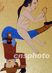 七月二十二日在香港藝術(shù)館舉行的“香港藝術(shù)雙年展2003”新聞發(fā)布會(huì)上,石家豪的作品《雙子俱樂(lè)部》(水墨設(shè)色金紙板八幅),獲優(yōu)秀獎(jiǎng)。 中新社記者:錢(qián)興強(qiáng)