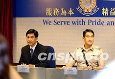 香港警務(wù)處刑事及保安處處長(zhǎng)周富祥[左]及行動(dòng)處處長(zhǎng)鄧竟成,7月22日會(huì)見(jiàn)新聞界,回顧香港今年上半年的罪案情況及警方工作內(nèi)容。作者:洪少葵