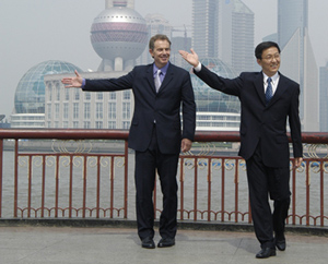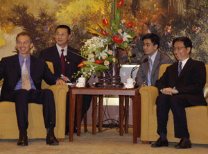 布萊爾拜訪了韓正市長并就雙方共同感興趣的經(jīng)濟及商業(yè)合作進行了討論。雙方主要議題是通過英中合作來加強中國經(jīng)濟的發(fā)展;研究英國公司在該合作進程中所起的作用;討論影響上海及中國其他地區(qū)商務(wù)環(huán)境的有關(guān)事宜。