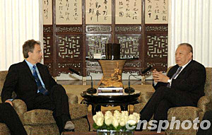 中新網(wǎng)7月23日電 香港行政長(zhǎng)官董建華今早在香港禮賓府與到訪(fǎng)的英國(guó)首相布萊爾會(huì)面。