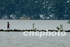中國安徽省今夏發(fā)生近五十年最嚴重的淮河洪水,前兩次洪峰因及時分洪而去,但第三次洪峰正在形成。中新社記者:賈國榮