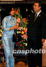 中國商務(wù)部部長呂福源二十三日在大連會(huì)見印度尼西亞工貿(mào)部長麗妮·蘇婉媂女士。中新社記者:鄭萍萍