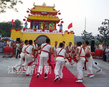 中新江蘇網(wǎng)7月24日電(記者丁東升 實(shí)習(xí)記者胡祥麟 通訊員孫愛華)昨晚,數(shù)千市民扶老攜幼歡聚南京獅子山公園廣場,觀賞在此舉行的“閱江樓·大明雄風(fēng)”主題燈展開幕式。當(dāng)晚7點(diǎn),在獅子山的東廣場伴隨著腰鼓隊(duì)的一段精彩演出,為期四個月的燈展正式拉開帷幕。盡管天氣悶熱,但仍擋不住絡(luò)繹不絕的群眾的熱情,整個東廣場被擠了個里三層外三層。
