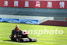 擁有貝克漢姆、羅納爾多、齊達(dá)內(nèi)等世界級(jí)球星的西班牙皇家馬德里隊(duì)將于二十五日到達(dá)昆明,進(jìn)行為期一周的訓(xùn)練,工作人員二十四日在紅塔體育中心修整草坪迎接球星們的到來(lái)。毛建軍 攝