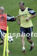 西班牙皇家馬德里足球隊二十六日下午在昆明冒雨訓(xùn)練,齊達(dá)內(nèi)表演嫻熟的盤帶過人技巧。中新社記者:毛建軍