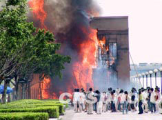 一個(gè)風(fēng)和日麗的日子里,M國(guó)駐廣州領(lǐng)事館門(mén)前人們?cè)谟崎e地交談、漫步,突然,轟隆一聲巨響,只見(jiàn)領(lǐng)事館窗口濃煙滾滾,頃刻大火蔓延,驚慌的人們四散逃開(kāi),哭聲、喊聲、呼救聲夾雜一片,一些民眾則被困在領(lǐng)事館的天臺(tái)顯得非常無(wú)助……