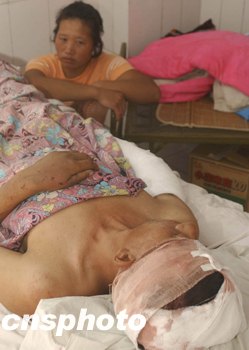 如果不是細心人帶領,我們很難在辛集市第一人民醫(yī)院找到爆炸后的燒傷者。在這里,燒傷病人是和醫(yī)院的普通病人住在一起的。經好心人指點,我們徑直上了醫(yī)院的七樓。這里的大夫語氣不是很客氣:“想采訪去八樓,那里才是厲害的!蹦敲矗@邊輕的又如何呢?