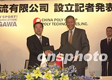 中國(guó)保利集團(tuán)與日本佐川急便30日在東京宣布,他們將聯(lián)手投資一千多萬美元,在深圳成立中國(guó)首家中外合資綜合性物流企業(yè)“保利佐川物流有限公司”。圖為保利集團(tuán)總經(jīng)理賀平與佐川急便社長(zhǎng)真鍋邦夫交換合同文本。中新社記者:陶光雄