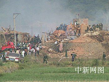 七月三十一日上午八點(diǎn)零五分,該廠在生產(chǎn)過程中發(fā)生爆炸,全部廠房崩塌,周邊五百米范圍內(nèi)數(shù)十座民房玻璃受損,煙花廠附近農(nóng)田中耕作的農(nóng)民被震、砸傷。